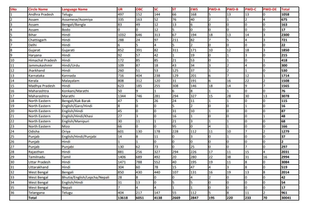 The India Post has released a notification of 30041 Vacancies for the post of Gramin Dak Sevak (GDS), Branch Postmaster (BPM), and Assistant Branch Postmaster (ABPM) in 23 circles of India through Post Office GDS Recruitment 2023.