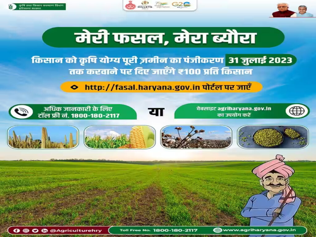 मेरी फसल मेरा ब्योरा (Meri Fasal Mera Byora 2023) : हरियाणा सरकार की एक अनोखी पहल है जिसके तहत किसानों की आय बढ़ाने का उद्देश्य लिया गया है।
