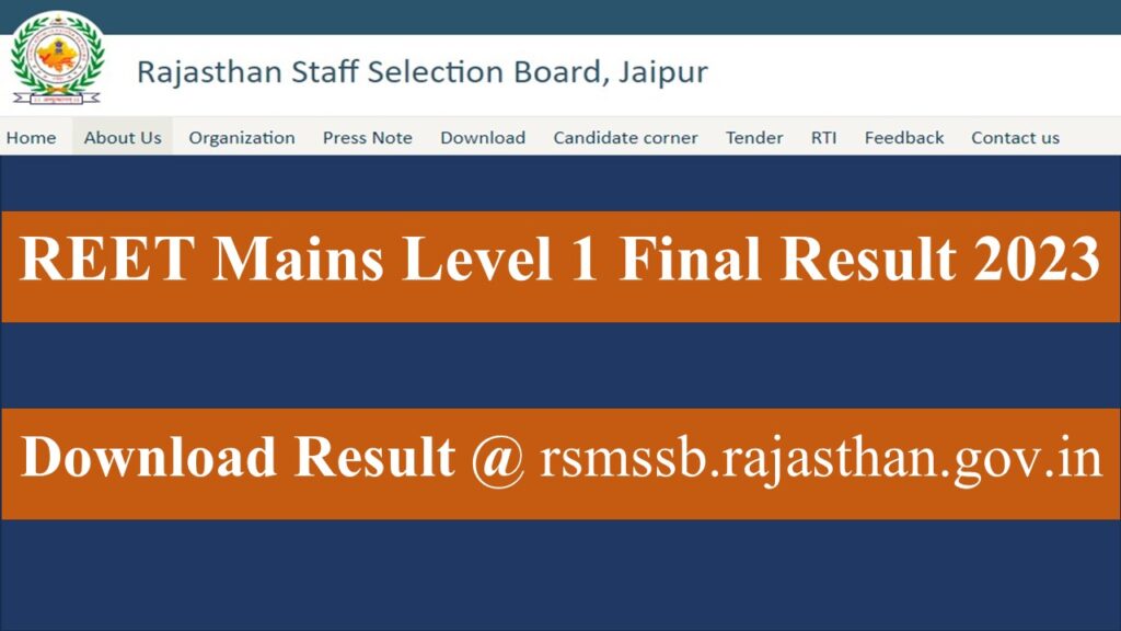 Home » REET Mains Level 1 Final Result 2023 @rsmssb.rajasthan.gov.in