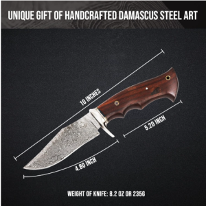 Each Damascus blade is handcrafted with 288 layers of Damascus steel to offer excellent durability and edge retention. The overall length of the knife is 10″ and the blade length is 4.8″. 8 oz weight.