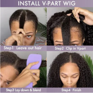 - No Glue or Adhesive Needed: V Part wigs are glueless, which makes them comfortable and easy to install. This design benefits sensitive scalps by eliminating the need for glue, making it a healthier option for extended wear.